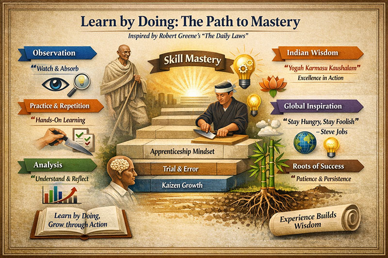In a world obsessed with credentials, shortcuts, and instant visibility, one quiet truth remains timeless: mastery belongs to those who learn by doing. In The Daily Laws, Robert Greene reminds us that every task, no matter how ordinary, contains the seeds of extraordinary growth. Observation, repetition, and relentless engagement with reality—not passive absorption—shape true expertise.