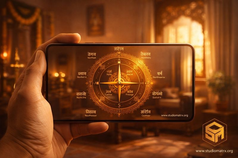 Studio Matrx’s Vastu Compass tool at studiomatrx.org/utilities/vastu-compass changes this completely. It uses your mobile phone’s built-in compass — the same sensor that guides your maps and your camera — to detect the precise orientation of any room in your home in real time. Point your phone at a wall and the tool tells you immediately which direction you are facing, what that direction means in Vastu terms, and what the ideal use of that space should be.