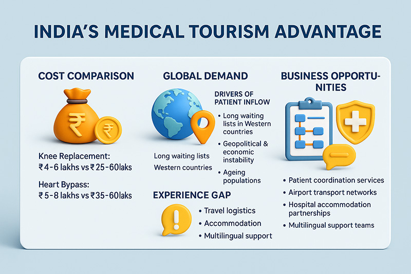 Efforts to improve infrastructure, cleanliness, and cohesion will also contribute to India's success in medical tourism.
