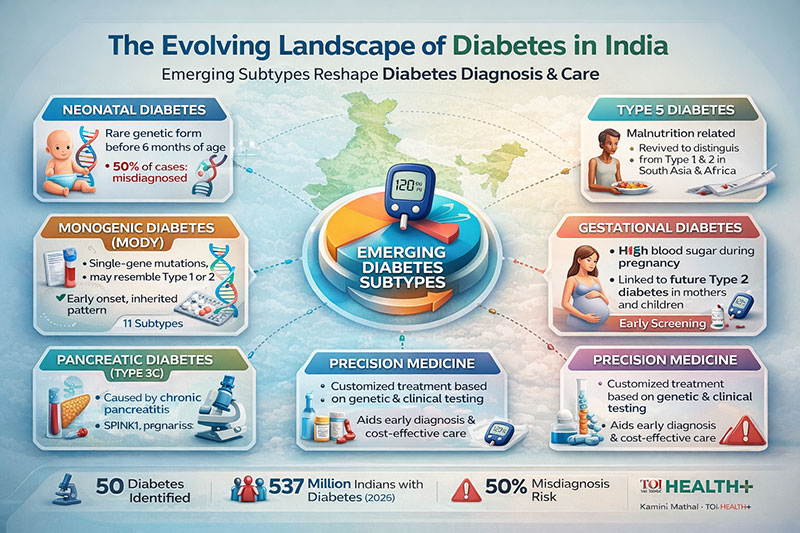 The diabetes crisis in India is not just a simple case of “juvenile” vs “adult-onset” disease anymore. According to Kamini Mathai in The Times of India, new study in genetics and medicine has found around 50 different varieties of diabetes, each with its own unique causes and treatment options. This growing classification is a big step toward precision therapy, which could change the way things work in a country that has the second highest number of adults with diabetes in the world.