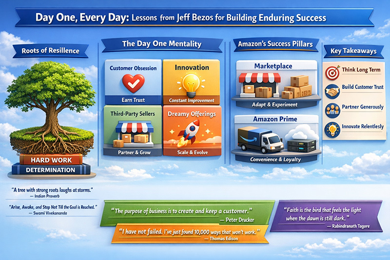 His "Day One" mindset, customer obsession, and willingness to innovate and take risks have made Amazon a global giant. The parallels you drew with Swami Vivekananda's philosophy and the Mahabharata's spirit of "paraspara bhavana" were striking 😊.